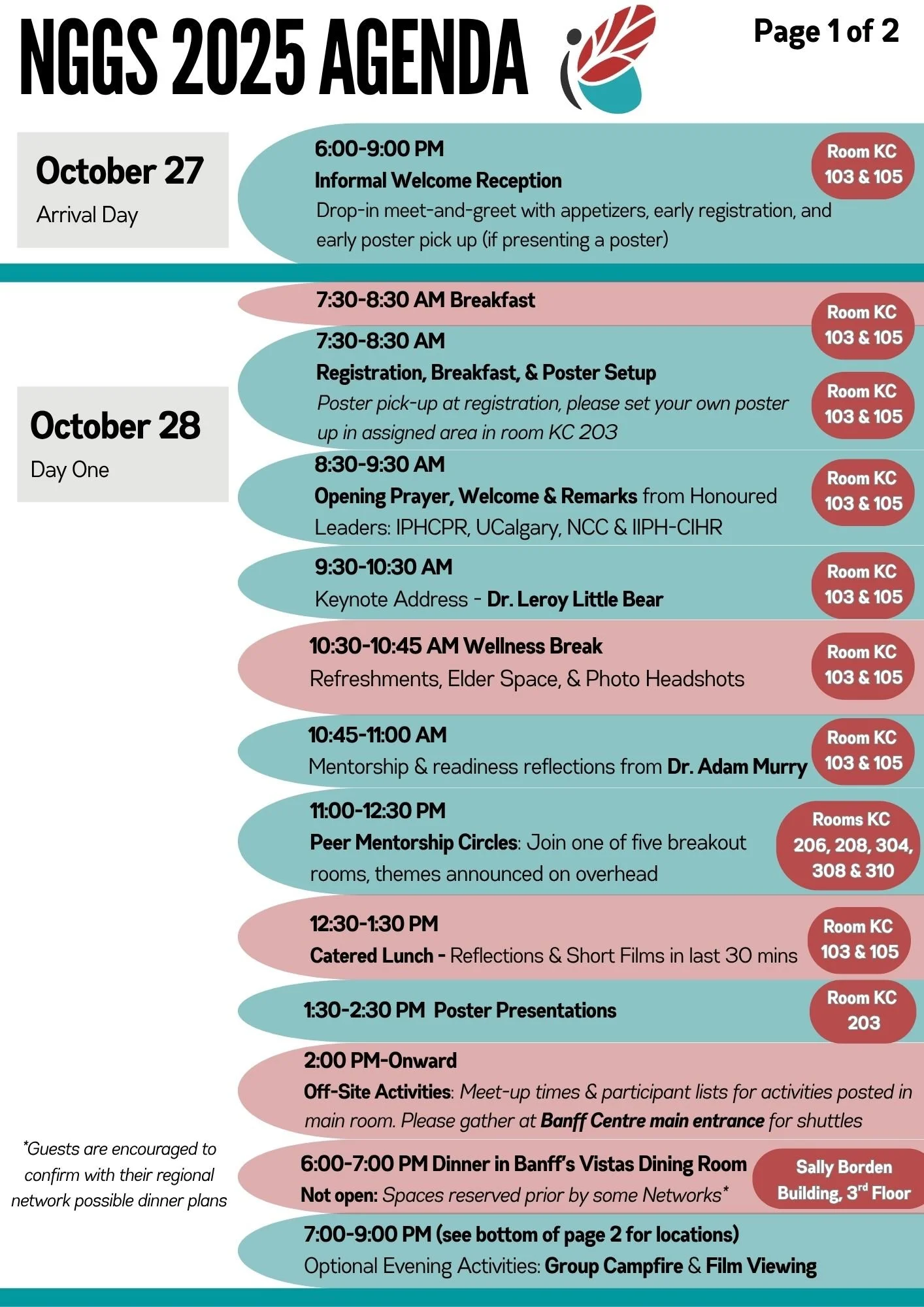 We are honoured to share that the IPHCPR Network is hosting the 2025 National Gathering of Graduate Students (NGGS) in Banff, Alberta. NGGS is an annual event that brings together Indigenous graduate students from across Canada who are conducting research related to Indigenous health and well-being.