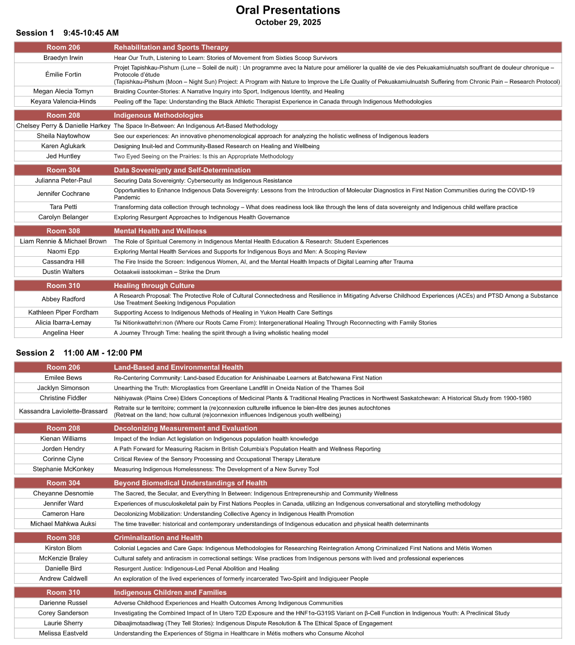 Oral presenters will present on October 29 during one of the three sessions: